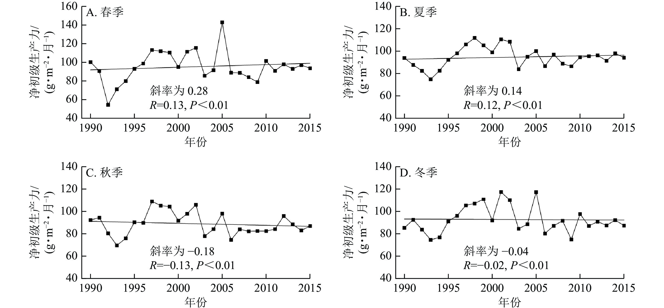 目的  探究城市森林不同植被类型土壤呼吸的时空动态特征及其影响因素,以期为区域碳预估提供理论参考。  方法  以北京奥林匹克森林公园为研究对象,采用便携式土壤呼吸测量仪,于2023年4—10月每月测定该公园26个样地(乔木群落与乔灌混交群落各13个)的土壤呼吸、土壤温度和土壤含水量,并结合高分辨率归一化植被指数,对土壤呼吸的季节与空间变化及其影响因素进行拟合分析。  结果  ①土壤呼吸和土壤温度的季节动态一致,均呈现先上升后下降单峰变化。乔木群落土壤呼吸均值为4.83 μmol·m−2·s−1,大于乔灌混交群落的4.42 μmol·m−2·s−1。②土壤温度可以分别解释乔木群落和乔灌混交群落土壤呼吸季节变化的90.0%和73.0%, 土壤含水量可以分别解释28.0%和37.0%,综合考虑温度−水分的双因子模型可以分别解释93.0%和82.0%。③乔灌混交群落土壤呼吸的空间变异系数与土壤含水量变化趋势相似,两者极显著正相关[决定系数(R2)为0.88,P<0.01],乔木群落土壤呼吸空间变化与土壤温度之间呈现极显著的非线性关系(R2=0.65,P<0.01)。④土壤呼吸对土壤温度的响应存在时空差异,时间上为近似直线增加,空间上为非线性响应,而土壤呼吸虽然时间和空间上都随土壤含水量的增加而增加,但其增加速率存在差异。  结论  城市森林土壤呼吸对环境因素的响应存在时空差异:土壤温度是主导城市森林土壤呼吸季节变化的主要因素,城市森林土壤呼吸空间变化主要影响因素在不同植被类型间存在差异。图6表2参38