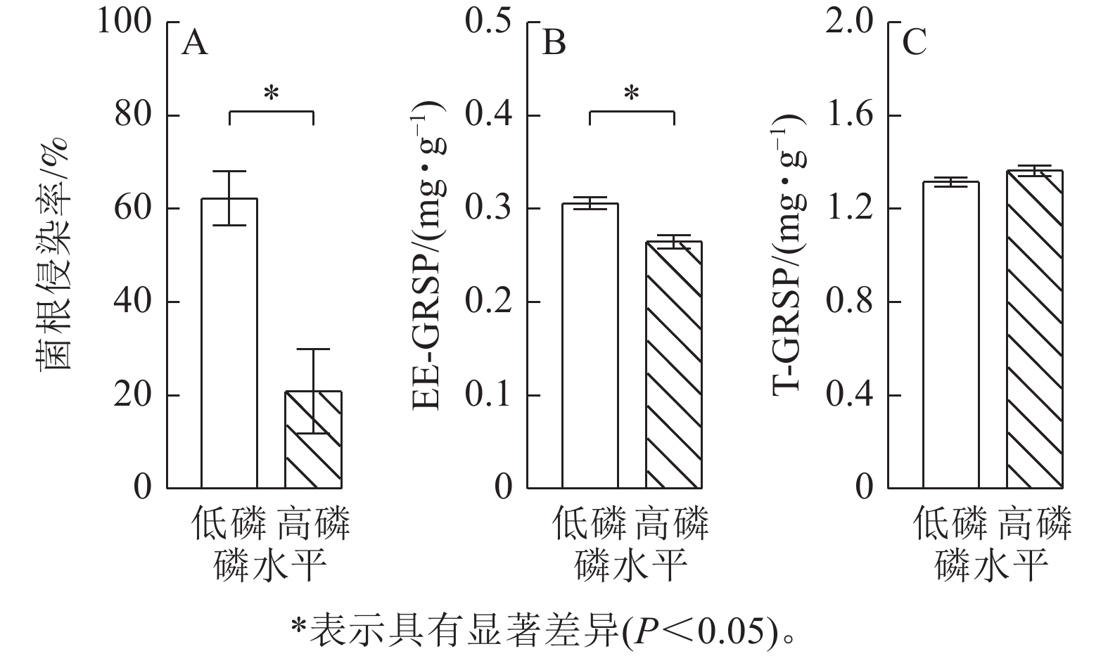 目的  研究土壤有效磷质量分数对玉米Zea mays生长、光合产物的地下分配和根际微生物群落结构的影响,探究玉米应对低磷胁迫的响应及对根际土壤碳动态的影响。  方法  采用根箱栽培法,在高磷和低磷条件下种植玉米,测定并分析土壤、根系、根系分泌物、植株样品和微生物群落结构等相关指标。  结果  高磷增加了玉米叶片磷质量分数,促进了玉米地上和地下部分的生长,增加了总根系分泌物可溶性碳的分泌,提高了根际几丁质酶、葡萄糖酶、纤维素酶、酸性磷酸酶的活性,并显著提高了根际酸杆菌门Acidobacteriota、放线菌门Actinobacteriota、芽单胞菌门Gemmatimonadota的相对丰度(P<0.05)。低磷条件下,丛枝菌根的侵染率和易提取态球囊霉素蛋白的质量分数显著高于高磷条件(P<0.05)。  结论  低磷提高了玉米的菌根侵染率和根系分泌物的分泌效率,促进了R策略微生物的生长和根际球囊霉素蛋白的质量分数。高磷条件下,玉米根际的几丁质酶、葡萄糖酶、纤维素酶、酸性磷酸酶活性更高,这些酶活性与K策略微生物相对丰度成正相关关系。图5参32