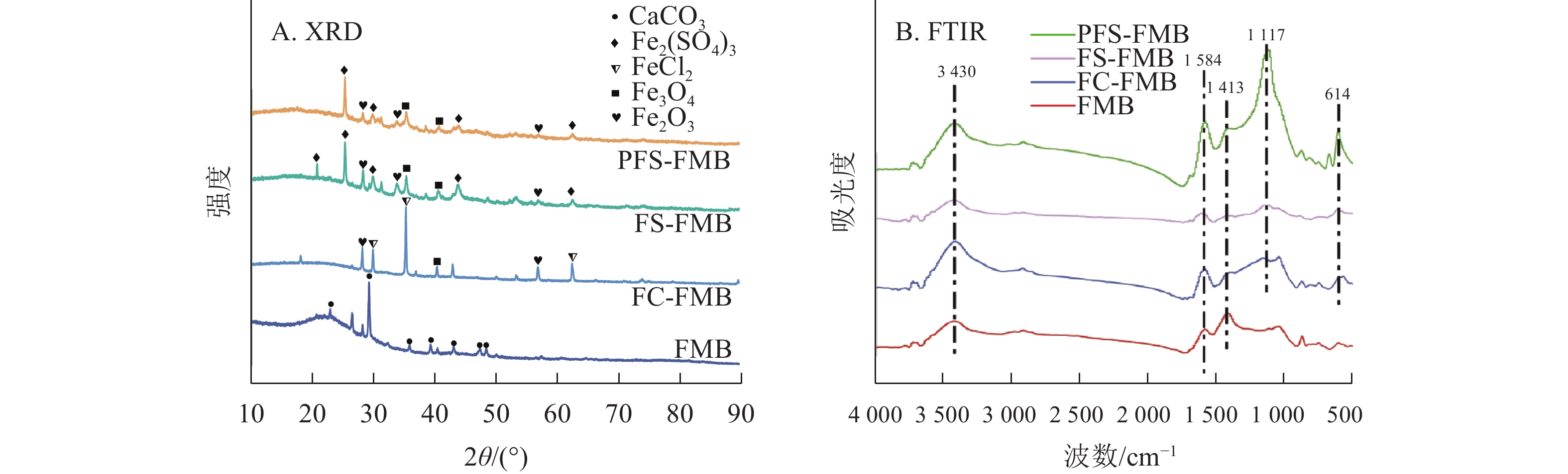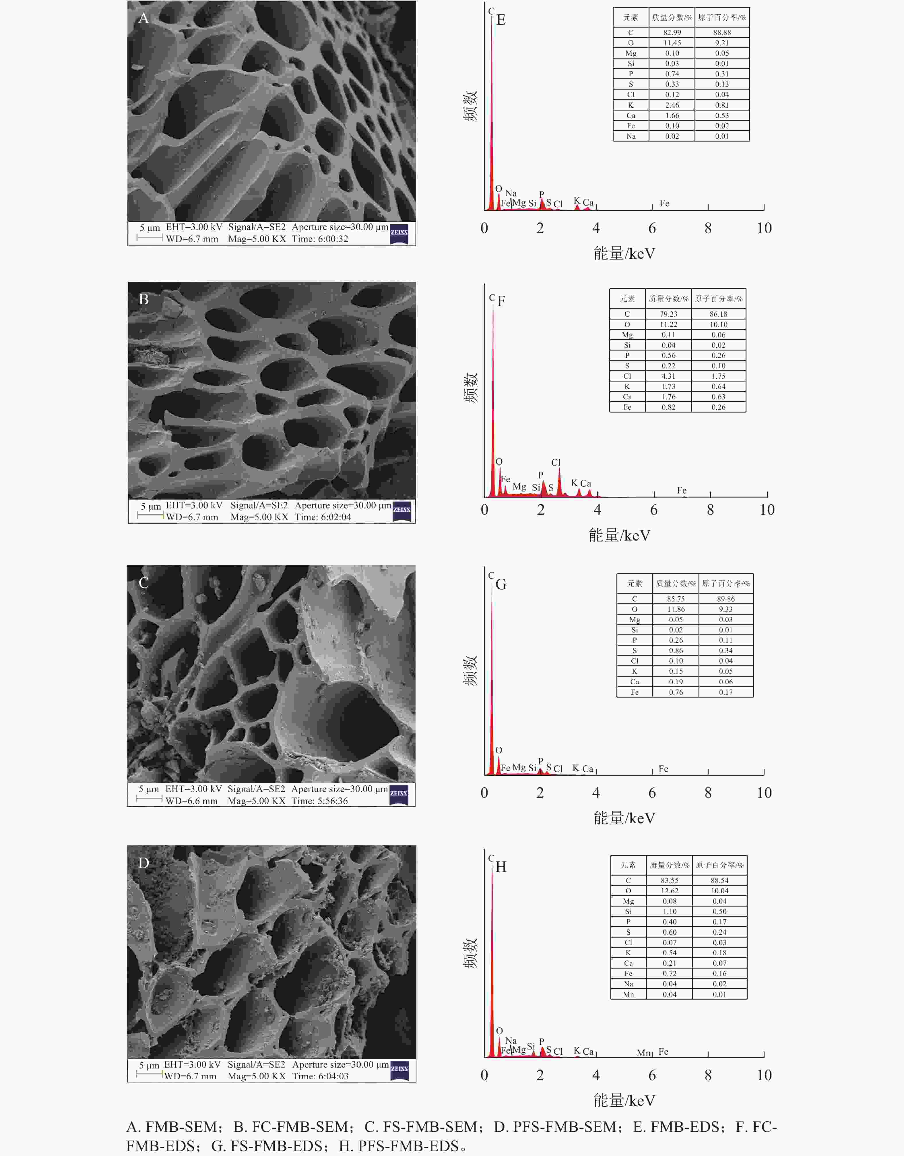 目的  探究铁基改性提升生物质炭对砷[As(Ⅲ)]吸附固定能力的潜力与机制,构建有效的固碳控砷体系。  方法  以大宗园林废弃物细叶榕Ficus microcarpa修剪的枝条为生物质炭原材料,采用批量吸附实验并结合扫描电子显微镜-能量色散光谱(SEM-EDS)、傅里叶变换红外光谱(FTIR)、X射线衍射(XRD)及X射线光电子能谱(XPS)等技术手段,系统研究了原始生物质炭(FMB)、氯化铁改性生物质炭(FC-FMB)、硫酸铁改性生物质炭(FS-FMB)和聚合硫酸铁改性生物质炭(PFS-FMB)的结构性质及其对水溶液中As(Ⅲ)的吸附性能和作用机制。  结果  铁基改性有效提升了生物质炭的比表面积,增幅达3.36~4.22倍,且改性生物质炭表面富含更多官能团,铁氧化物成功负载在生物质炭表面。pH为5时,PFS-FMB对As(Ⅲ)的去除率最高,达到91.16%,高于其他类型生物质炭。As(Ⅲ)的吸附过程符合Elovich动力学模型和Langmuir等温吸附模型。4种生物质炭对As(Ⅲ)的最大吸附容量从大到小依次为:PFS-FMB (13.53 mg·g−1)、FS-FMB (6.36 mg·g−1)、FC-FMB (3.11 mg·g−1)、FMB (1.29 mg·g−1)。铁基改性生物质炭对As(Ⅲ)以化学吸附为主,通过表面络合形式实现,吸附机制为砷氧阴离子与铁氧化物的配位作用以及表面羟基官能团的络合作用。  结论  铁基改性生物质炭是一种高效的As吸附剂,其中PFS-FMB展现出最佳的吸附性能。图9表3参50
