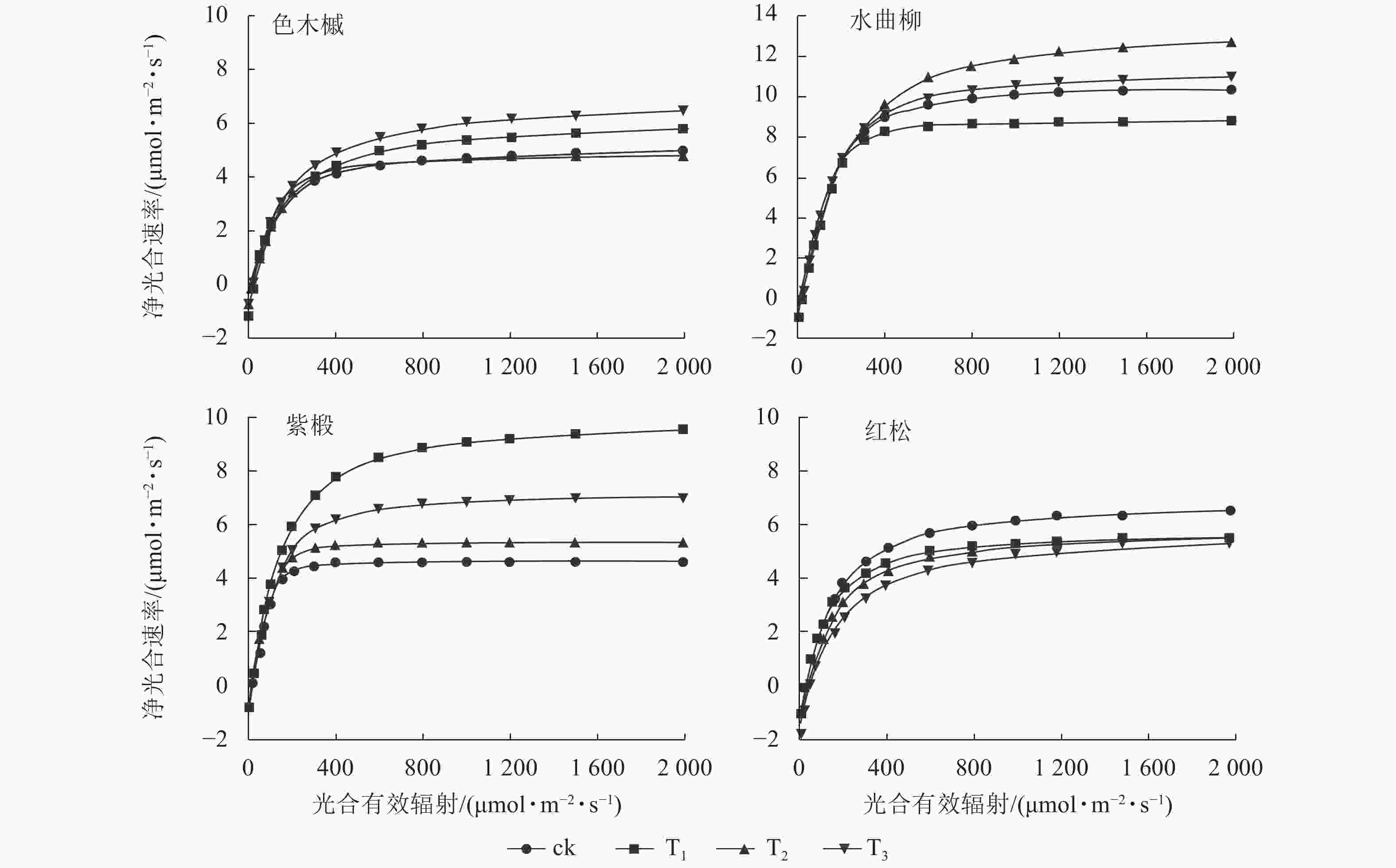 目的  探索侧柏Platycladus orientalis幼苗对弱光环境的适应机制,阐明外源硅对遮光胁迫的缓解效应。  方法  以3年生侧柏幼苗为材料,采用黑尼龙网覆盖,设置自然光、低度遮光、中度遮光和高度遮光的4种遮光梯度,结合0 (Si0)和2 mmol·L−1 (Si1)硅酸钠外源硅处理水平,两者随机组合为8种处理。测定不同处理侧柏幼苗生长指标以及光合色素、渗透调节和抗氧化等的生理指标,分析幼苗弱光适应特征及硅的调控效应。  结果  ①遮光处理显著抑制侧柏基径生长,抑制幅度达5.18%~40.51% (Ρ<0.05);施硅处理促进基径生长,增粗幅度达4.72%~16.67%。遮光环境可促进株高生长,但在自然光和中低度遮光条件下,施硅处理抑制株高生长。说明在一定的光强范围内施硅处理具有“基径增粗-顶端抑制”双向调控效应。②光强降低,叶绿素a和叶绿素b质量分数总体呈上升趋势,叶绿素a/b总体呈下降趋势,有利于在低光强时提升光合系统对光的捕获效率。③遮光诱导渗透调节物质动态响应(可溶性糖、游离脯氨酸质量分数先升后降,可溶性蛋白质量分数先降后升),增强抗氧化酶保护[过氧化物酶和过氧化氢酶活性升高,丙二醛质量摩尔浓度显著降低(Ρ<0.01) ];外源硅强化渗透调节和抗氧化能力,提升了可溶性糖、蛋白质质量分数及过氧化物酶活性,降低了丙二醛质量摩尔浓度。  结论  侧柏幼苗利用叶绿素合成增强光捕获能力,激活抗氧化酶防御以提高耐荫性;外源硅能不同程度地优化形态建成,并通过提高渗透调节和抗氧化特性,提升幼苗抵御弱光胁迫的能力。图4表2参39