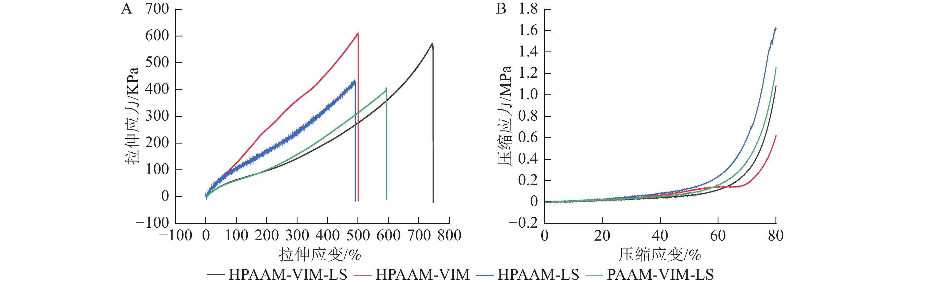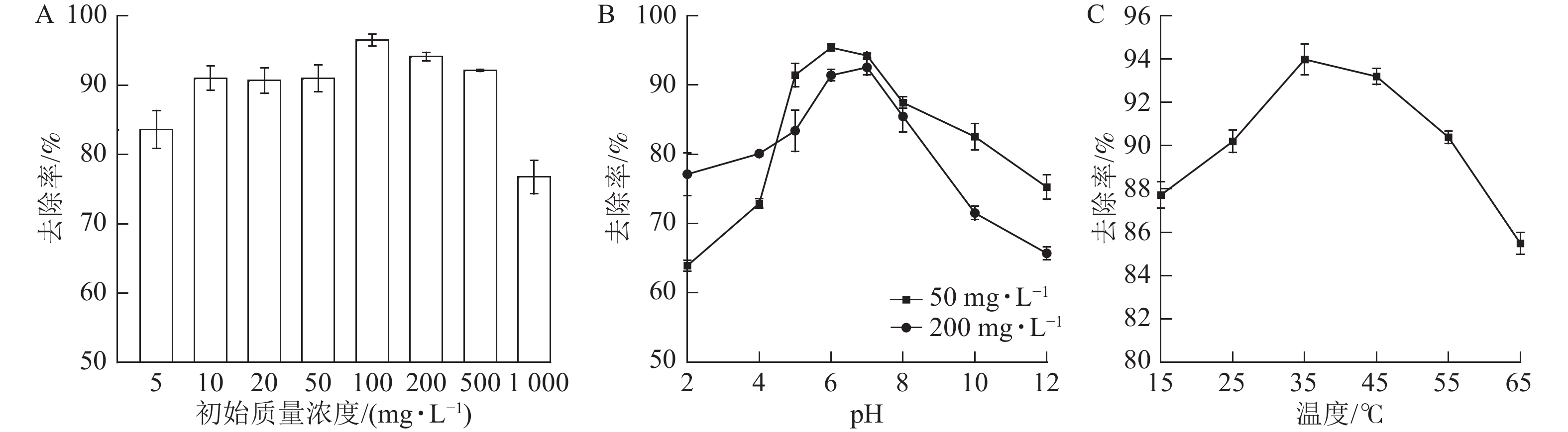 目的  针对环境废水治理中偶氮类阴离子染料降解难、传统吸附材料环境适应性差等问题,本研究旨在开发一种基于农林生物质(木质素)新型复合水凝胶,实现染料高效吸附,为绿色水处理材料制备提供新策略。  方法  通过自由基共聚法合成一种新型木质素基复合水凝胶(HPAAM-VIM-LS),利用扫描电子显微镜(SEM)、傅立叶变换红外光谱仪(FTIR)、X射线光电子能谱(XPS)和X射线衍射(XRD)表征材料微观结构与化学组成;进行热重分析、拉伸/压缩实验评估热稳定性与力学性能;通过吸附实验探究HPAAM-VIM-LS对阴离子染料刚果红(CR)的吸附性能及循环利用性,并结合吸附动力学与等温线模型阐明吸附机制。  结果  HPAAM-VIM-LS呈现三维多孔网络结构,表面富含羟基、羧基及咪唑阳离子基团赋予材料丰富的活性位点,材料热分解温度大于189.9 ℃,拉伸应变达746%,弹性模量为15.15 MPa。在pH 6.0、温度35 ℃条件下,HPAAM-VIM-LS对CR的去除率达96.4%,最大吸附量为490.58 mg·g−1,且在pH 5.0~8.0、温度25~55 ℃范围内保持高效吸附。结构解析表明:吸附机制由静电吸引、氢键、π—π堆叠、孔隙填充及配位作用协同驱动,符合准二级动力学模型,受颗粒外/内扩散与化学吸附共同控制。HPAAM-VIM-LS 7次吸附-解吸循环后,CR去除率仍保持85%以上。  结论  本研究成功制备了一种环境友好型木质素基复合水凝胶,它兼具高吸附容量、宽环境适应性和优异机械性能。本研究可为木质素资源化利用及染料废水的治理提供高效、可持续的解决方案。图11表3参29