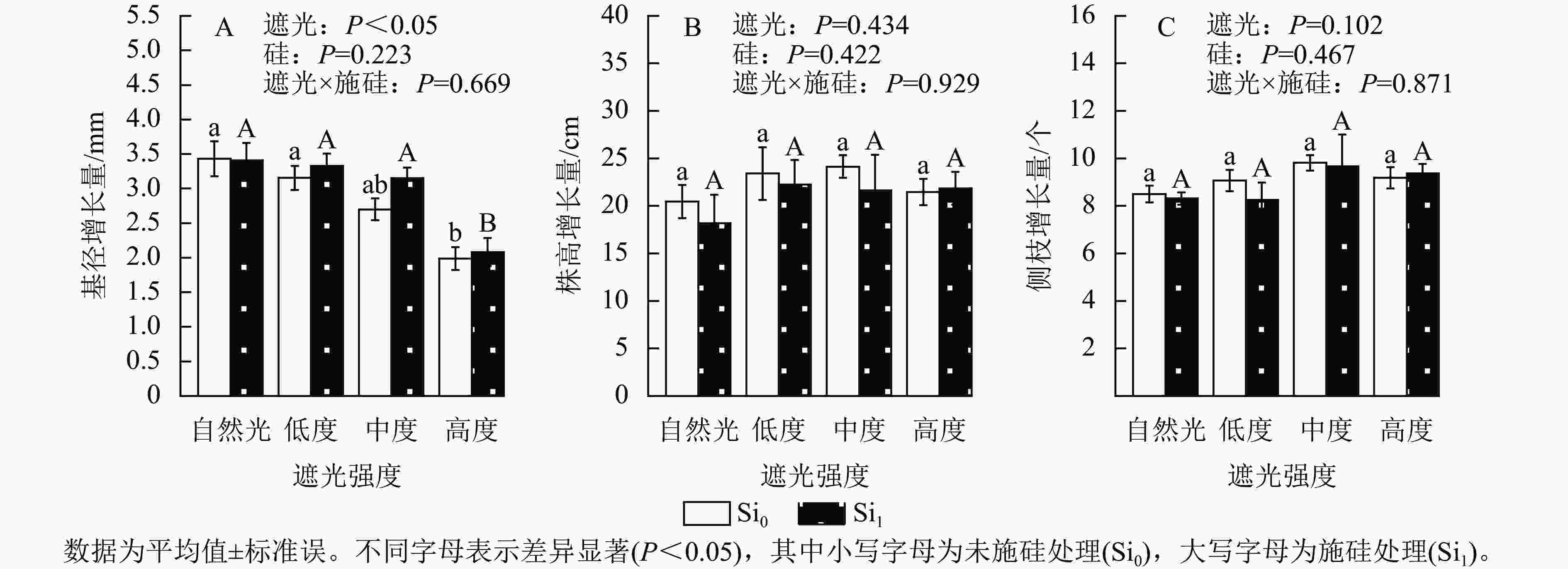 遮光胁迫下外源硅对侧柏幼苗形态特征和生理抗逆性的调控效应
