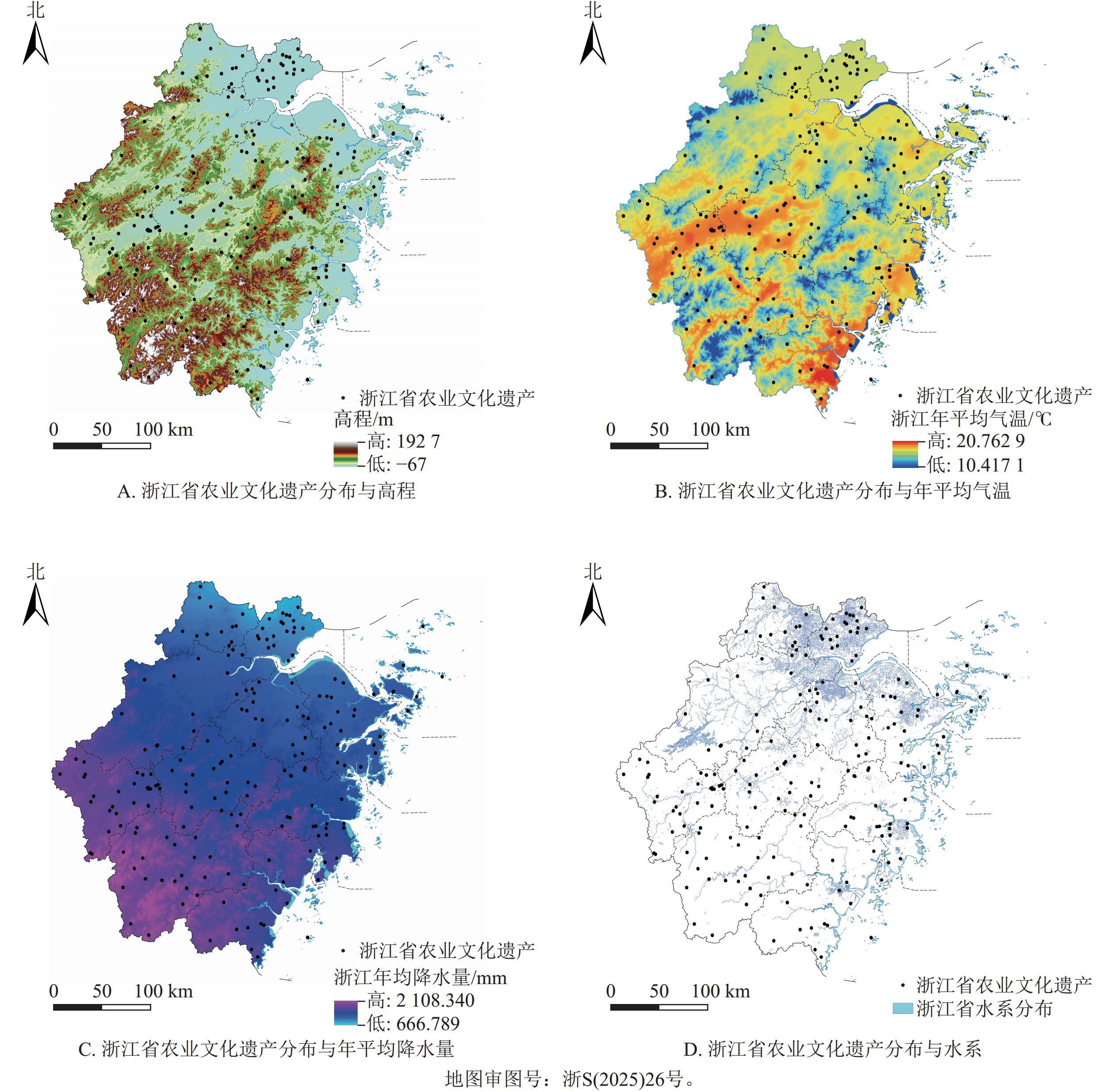 目的 浙江省是中国最早开展农业文化遗产挖掘和保护工作的省份,浙江省的中国重要农业文化遗产和全球重要农业文化遗产数量均居中国首位。研究浙江省农业文化遗产的空间分布格局和影响因素,对推动中国农业遗产保护和可持续利用具有重要借鉴意义。 方法 基于浙江省农业农村厅2024年认定的205处农业文化遗产,利用ArcGIS 10.2分析其空间格局、形态和集中程度,结合浙江省的地形对农业文化遗产进行空间分类,并分析其影响因素。 结果 浙江省农业文化遗产空间分布呈现整体分散、小范围多点聚集的形态。农业文化遗产在市域尺度上集中程度较高,主要集中在丽水市和衢州市;在县域尺度上,龙游县最为集中。浙江省农业文化遗产在空间上分为浙西中山丘陵—高山农业文化遗产区、中部金衢盆地—平原与盆地农业文化遗产区、浙北平原—水乡农业文化遗产区、浙东丘陵—复合农业文化遗产区、东南沿海平原与滨海岛屿—海洋渔类农业文化遗产区。 结论 浙江省农业文化遗产空间分布格局差异主要受高程、气候、水系等自然因素以及经济水平、人口、城镇化率、历史文化等社会因素的综合影响。图6参37