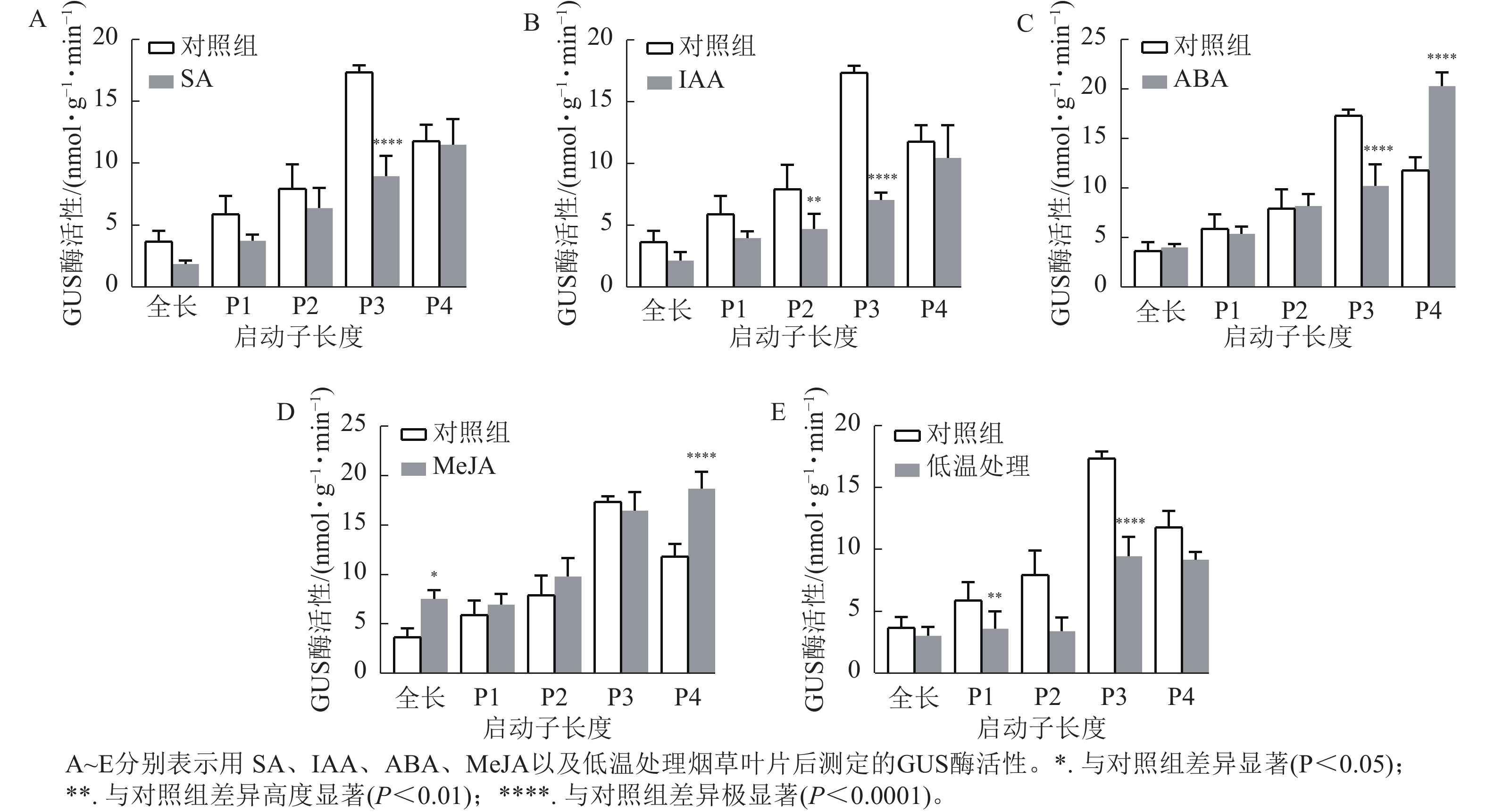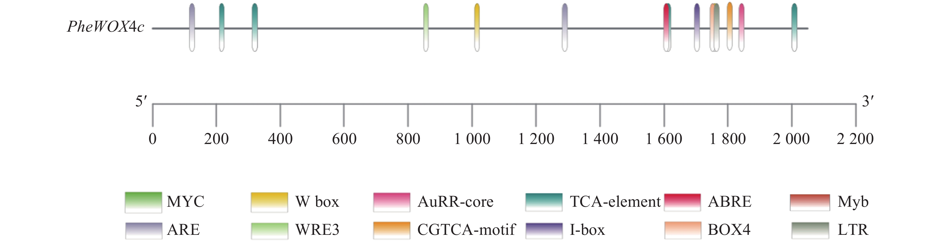 目的 WOX4基因是参与植物生长发育调控的关键基因之一。研究毛竹Phyllostachys edulis PheWOX4c启动子的生物学功能和表达调控机理,为阐明毛竹生长发育过程的调控机制提供参考。 方法 通过Plant CARE网站初步鉴定毛竹PheWOX4c基因启动子上顺式作用元件,构建不同长度5′端缺失启动子植物表达载体,报告基因为GUS,选择不同环境因子对瞬时转化后的本氏烟草Nicotiana tabacum叶片进行处理。通过 GUS染色分析PheWOX4c基因启动子全长及各长度启动子片段活性,以及启动子在不同环境因子处理下的响应模式。 结果 PheWOX4c基因启动子序列上可能包含众多激素响应元件[水杨酸(SA)、脱落酸(ABA)、生长素(IAA)和茉莉酸甲酯(MeJA)等]和非生物胁迫响应元件(低温、干旱等)。通过GUS染色发现PheWOX4c基因启动子活性会受到SA、ABA、IAA以及低温处理的抑制, 表明有负调控SA的响应元件存在于启动子序列−507~−137 bp,且该区间还存在负调控ABA的响应元件,而−137~0 bp处存在正调控ABA的响应元件,在−2 045~−1 745 bp和−137~0 bp存在MeJA应答增强元件,在−1 140~−507 bp存在与低温相关的负调控响应元件。 结论 PheWOX4c基因启动子含有多种激素响应元件和非生物胁迫响应元件,且不同调控元件对多种激素的响应存在差异,表明该基因受多个转录因子的调控,其上游调控网络十分复杂。图7表2参38