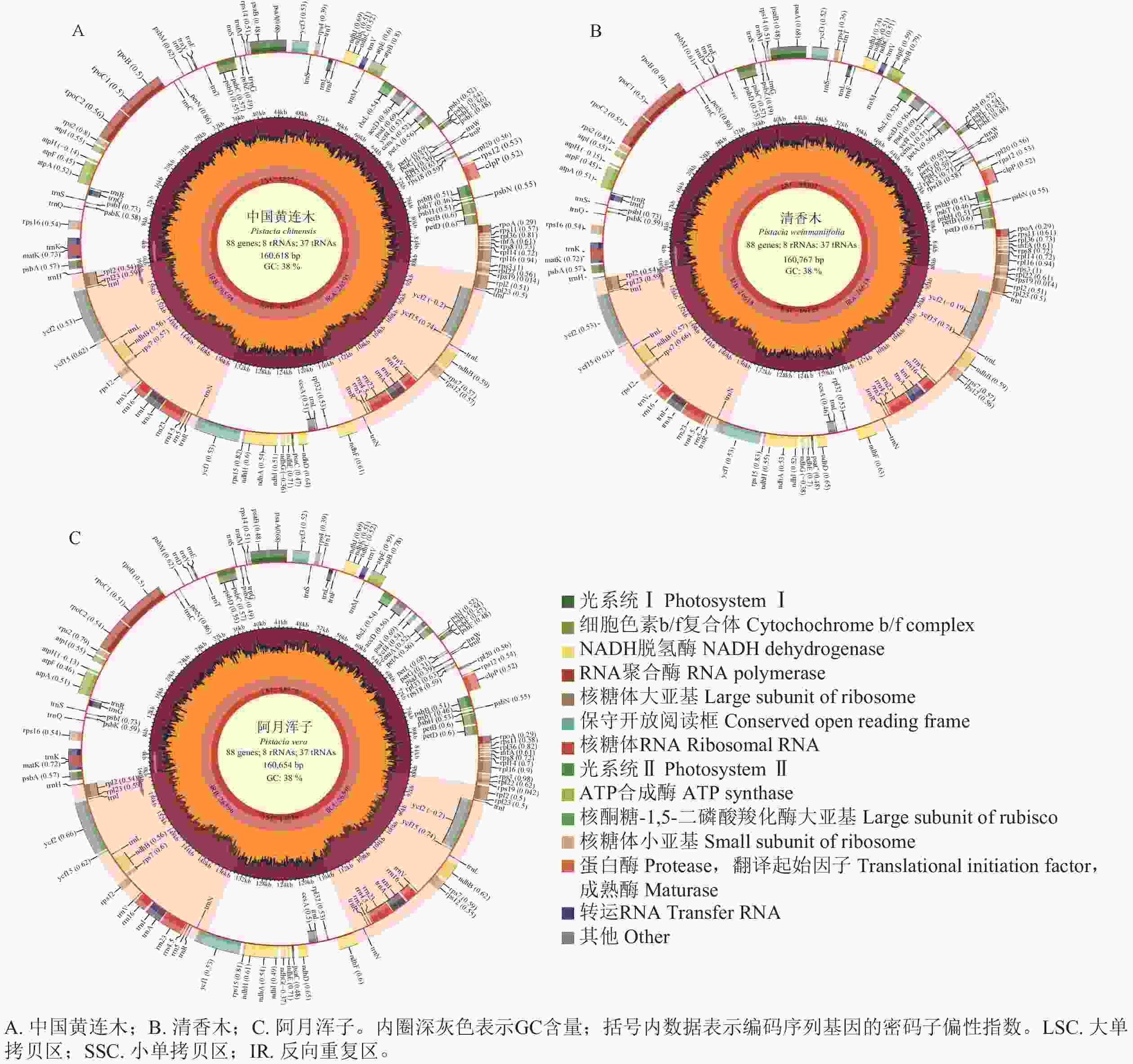 3种黄连木属植物叶绿体基因组结构特征及遗传关系