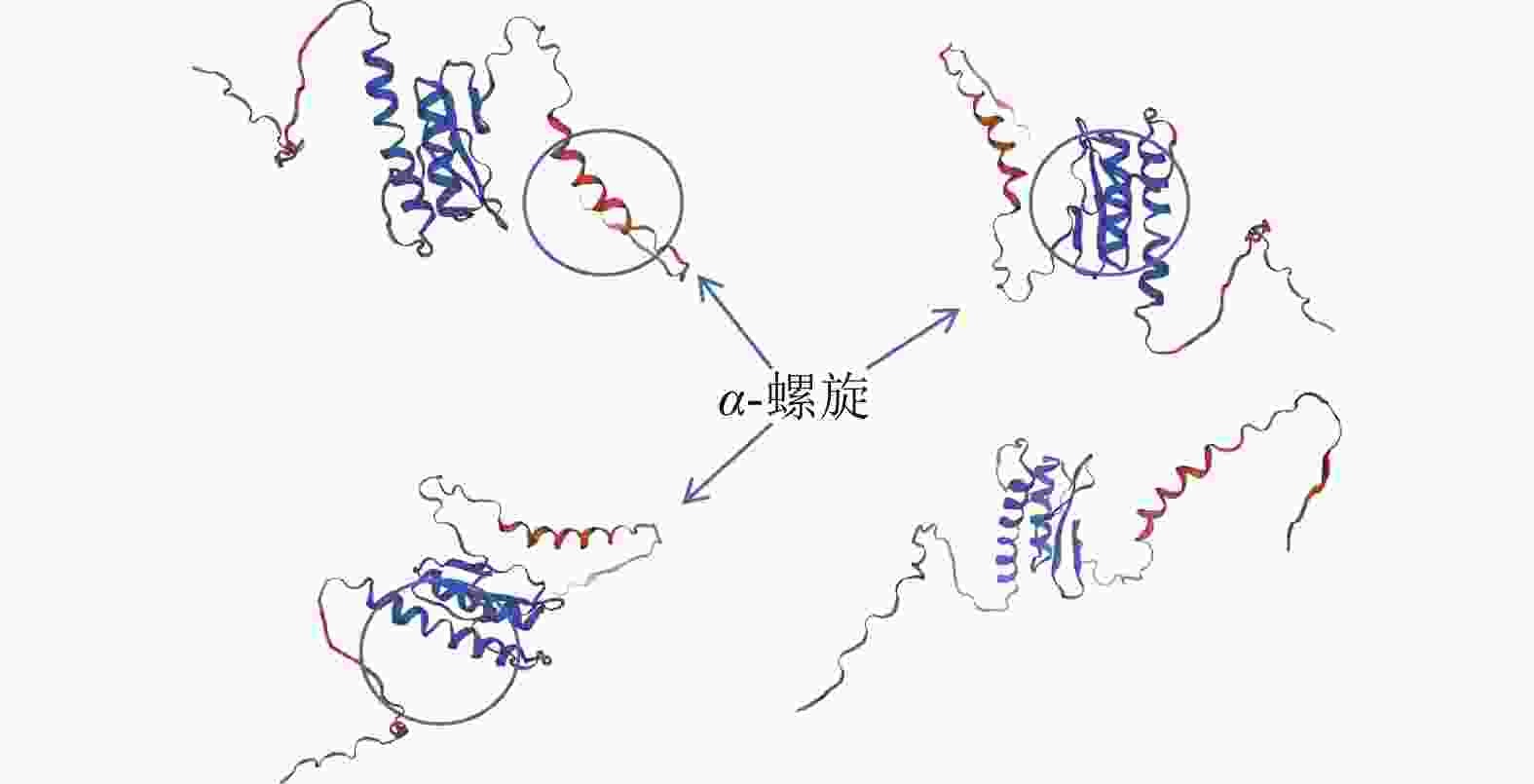 通过NCBI网站对PmERF011蛋白结构域分析,发现48~111位氨基酸有1个AP2/ERF保守结构域。进一步利用Sopma在线网站预测其二级结构发现:α-螺旋与延伸链集中于58~134位氨基酸,占比为24%;无规则卷曲结构分布其中及两侧,占比最高约76%。未预测到β-转角及β-折叠。基于Swiss model网站预测的蛋白质三级结构(图2)可知:PmERF011具有3个显著的α-螺旋,与二级结构预测结果一致,进一步支持它为典型AP2/ERF家族成员。