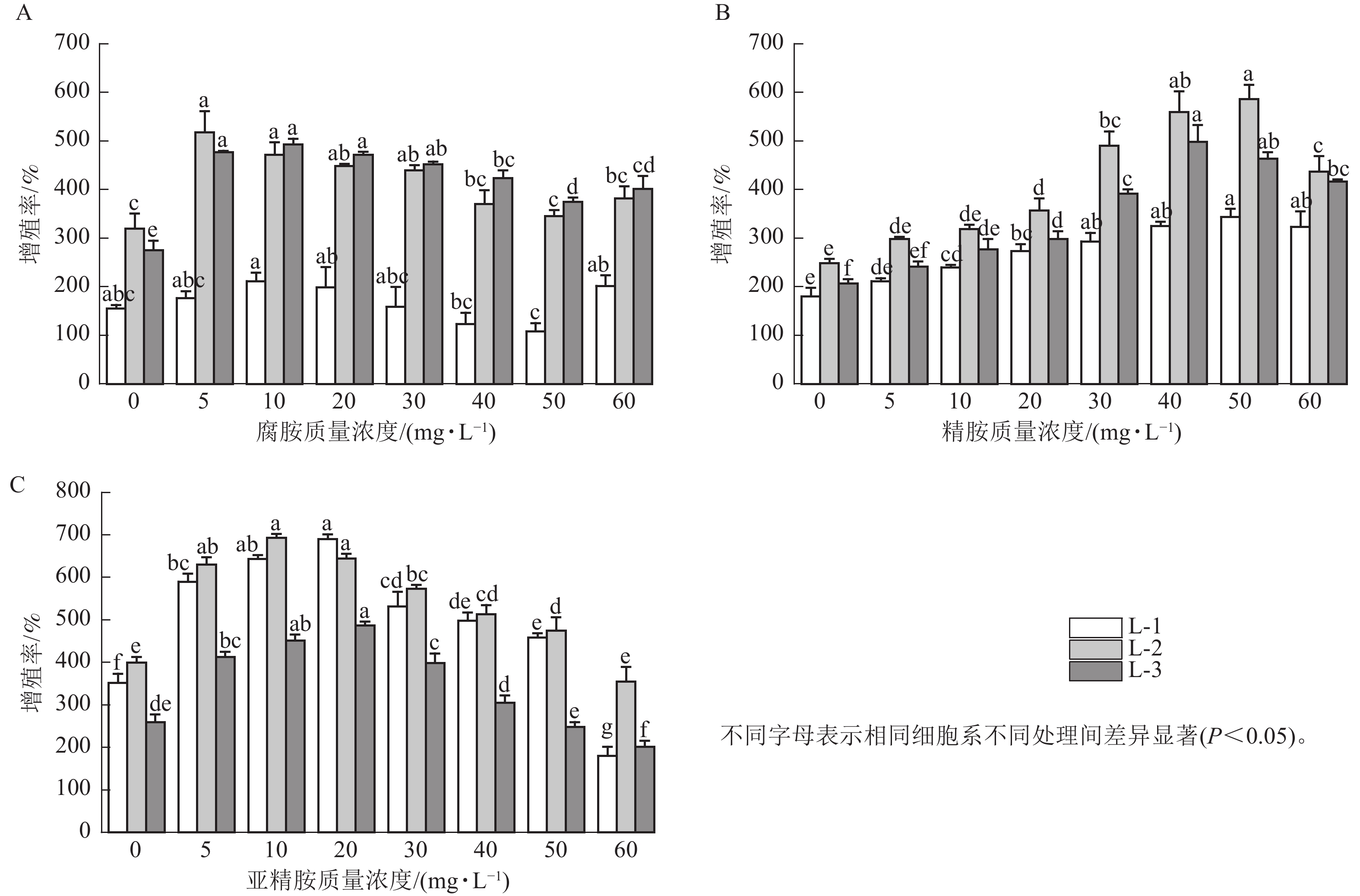 目的 阐明添加外源多胺(PAs)对红松Pinus koraiensis胚性愈伤组织生理生化的影响,以提高红松胚性愈伤组织的增殖能力。 方法 在增殖培养基中分别添加不同质量浓度的腐胺、精胺和亚精胺,统计红松胚性愈伤组织的增殖率,分析细胞内的过氧化氢(H2O2)、超氧化物歧化酶(SOD)、过氧化氢酶(CAT)、过氧化物酶(POD)、吲哚乙酸(IAA)、脱落酸(ABA)、乙烯(ETH)以及腐胺、精胺和亚精胺水平的动态变化。 结果 外源多胺对红松胚性细胞增殖起到促进作用,其中5~30 mg·L−1腐胺、40~50 mg·L−1精胺和10~20 mg·L−1亚精胺促进效果最优,增殖率分别提升了2.22%~79.27%、80.56%~141.12%、61.25%~96.21%。此外,外源添加多胺显著降低了细胞内H2O2质量摩尔浓度和抗氧化酶活性(P<0.05),提高细胞内源多胺和激素水平。外源添加50 mg·L−1精胺能够显著提升细胞内源多胺水平和激素水平(P<0.05),外源添加10 mg·L−1腐胺可显著提升细胞内乙烯和精胺质量浓度(P<0.05),而外源添加20 mg·L−1亚精胺则有效促进吲哚乙酸、腐胺和精胺质量浓度的增加。 结论 添加适当质量浓度的外源多胺能提高内源多胺水平、激素含量和抗氧化能力,促进红松胚性愈伤组织的增殖。图4参35