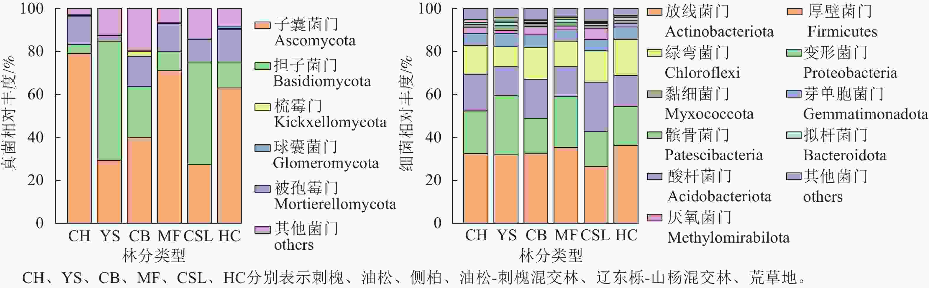 图  2  不同林分类型下土壤微生物群落组成