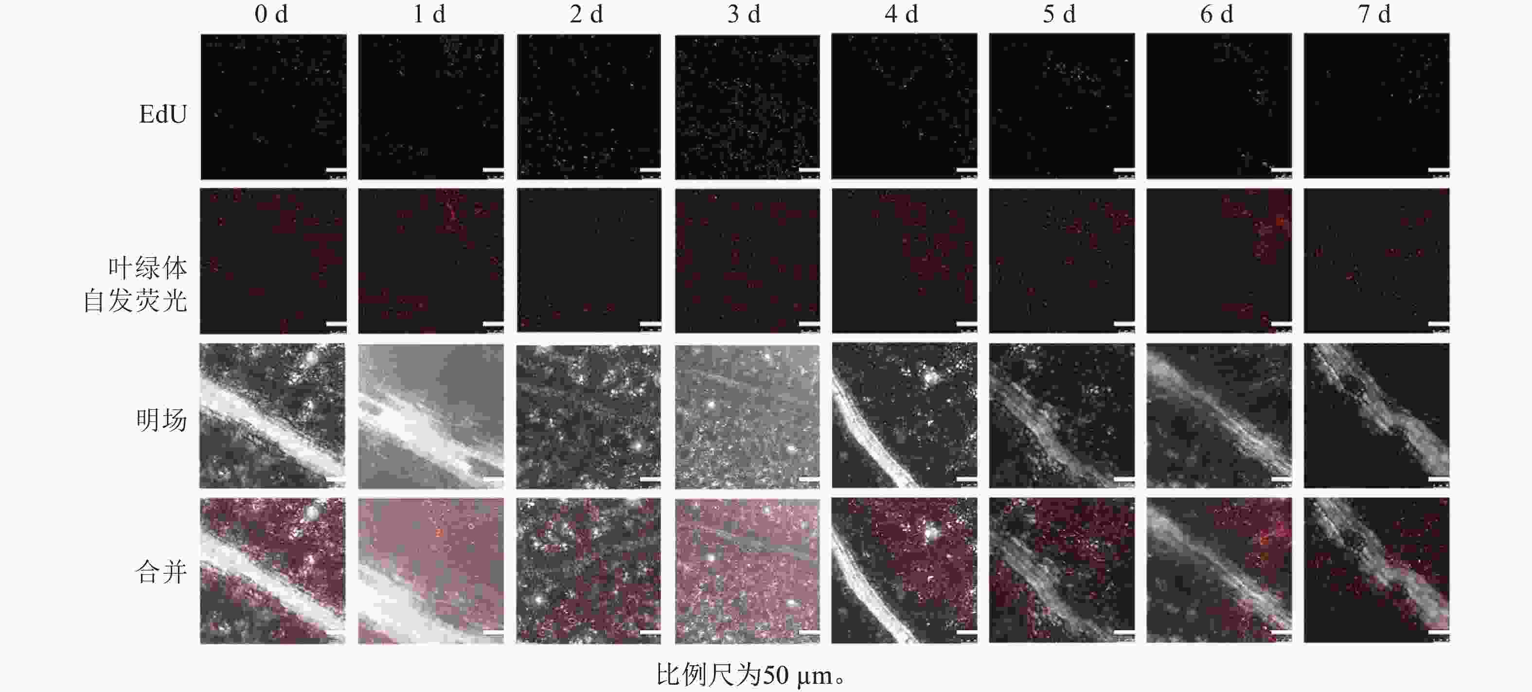 图  4  尾巨桉DH32-29叶片不同离体培养时间下的EdU染色