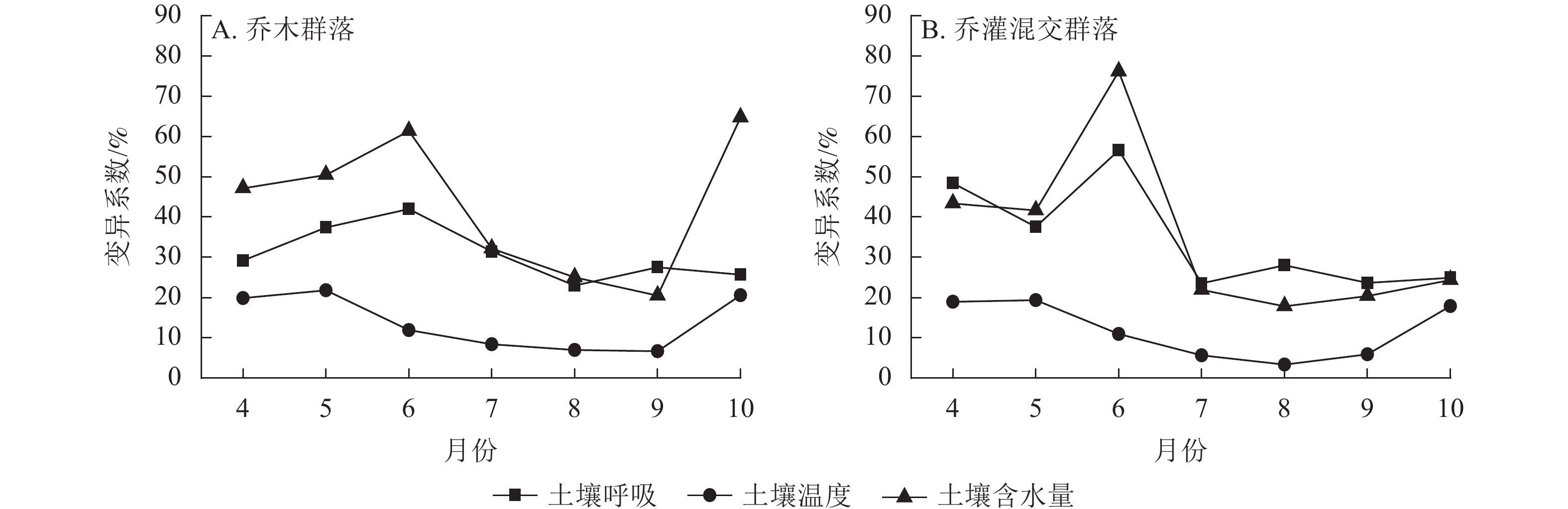 Objective This study aims to investigate the spatiotemporal dynamics, as well as the driving factors of soil respiration across different vegetation types of urban forests, so as to provide theoretical references for regional carbon estimation. Method Taking Beijing Olympic Forest Park as the research object, a portable soil respiration measurement system was used to measure soil respiration (Rs), soil temperature (Ts), and soil water content (CSW) of 26 sample plots (13 in the arbor community and 13 in the arbor-shrub mixed community) monthly from April to October in 2023. And combined with high-resolution normalized difference vegetation index (INDV), a fitting analysis was conducted on the seasonal and spatial variations of Rs and the influencing factors. Result (1) The seasonal dynamics of Rs and Ts were consistent, showing a unimodal pattern of first increasing and then decreasing. The average Rs in the arbor community (4.83 μmol·m−2·s−1) was higher than that in the arbor-shrub mixed community (4.42 μmol·m−2·s−1). (2) Ts accounted for 90.0% and 73.0% of the seasonal variation in Rs in the arbor and arbor-shrub mixed community, respectively, while CSW explained 28.0% and 37.0%. A dual-factor model incorporating both temperature and moisture could explain 93.0% and 82.0% of the variation, respectively. (3) The spatial coefficient of variation of Rs in the arbor-shrub mixed community was similar to the variation trend of CSW, with a significant positive correlation between the two (R2=0.88, P< 0.01). In contrast, there was a highly significant nonlinear relationship between the spatial variation of Rs and Ts (R2=0.65, P<0.01) in the arbor community. (4) The response of Rs to Ts varied in time and space, with an approximately linear increase in time and a nonlinear response in space. Although Rs increased with the increase of CSW in both time and space, the rate of increase varied. Conclusion The response of Rs to environmental factors in urban forests exhibits spatiotemporal variations. Ts is the driving factor of seasonal variations in Rs, while the dominant factors of spatial variation of urban forest Rs vary among different vegetation types. [Ch, 6 fig. 2 tab. 38 ref.]
