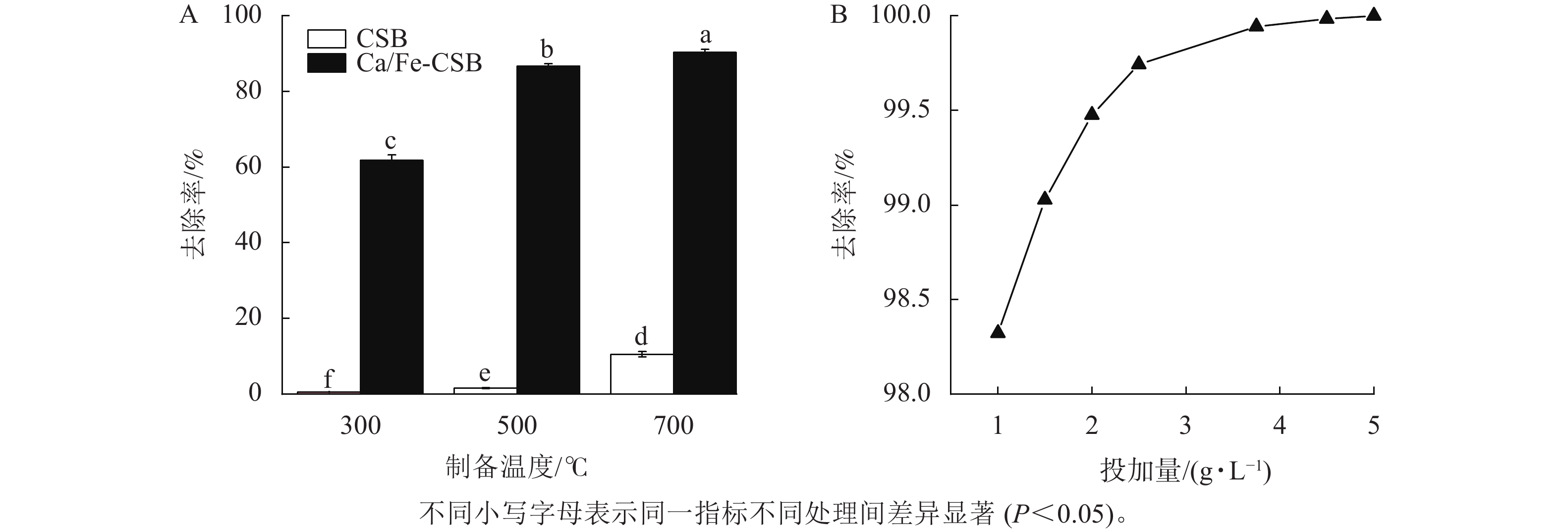 Objective This study investigates the influence of pyrolysis temperature and calcium-iron (Ca/Fe) modification on the pore structure of biochar and its phosphate adsorption performance, aiming to provide reference for the application of modified biochar in the field of water treatment. Method Biochars and Ca/Fe-modified biochars were synthesised at 300 , 500 , and 700 ℃, and characterised using scanning electron microscopy (SEM), X-ray diffraction (XRD), and Fourier transform infrared spectroscopy (FTIR) to investigate their microstructure and surface chemistry. Batch adsorption experiments were conducted to evaluate the effects of pyrolysis temperature, dosage, solution pH, and co-existing ions on phosphate removal. Furthermore, adsorption mechanisms were elucidated using isotherm and kinetic models. Result With increasing pyrolysis temperature, the pore structure of biochar developed progressively. Notably, Ca/Fe-modified biochar produced at 700 ℃ exhibited a highly ordered porous architecture and enlarged specific surface area, achieving a maximum phosphate adsorption capacity of 890.836 mg·g−1 and a removal efficiency of 90.32%. Adsorption isotherms fitted the Sips model, while kinetic data followed the pseudo-second-order model, indicating chemisorption as the dominant mechanism. XRD analysis confirmed the formation of Ca(OH)2 at high temperature, which contributed to enhanced phosphate fixation. Adsorption performance was influenced by pH, dosage, and co-existing ions; alkaline conditions and optimised dosage improved phosphate removal, whereas competing anions such as \begin{document}${\mathrm{NO}}_3^- $\end{document} and \begin{document}$ {\mathrm{SO}}_4^{2 - } $\end{document} inhibited the adsorption process. Conclusion Tuning pyrolysis temperature and Ca/Fe modification significantly enhances the pore architecture and adsorption performance of biochar, offering an efficient material for phosphate removal from aqueous environments. [Ch, 5 fig. 4 tab. 32 ref.]