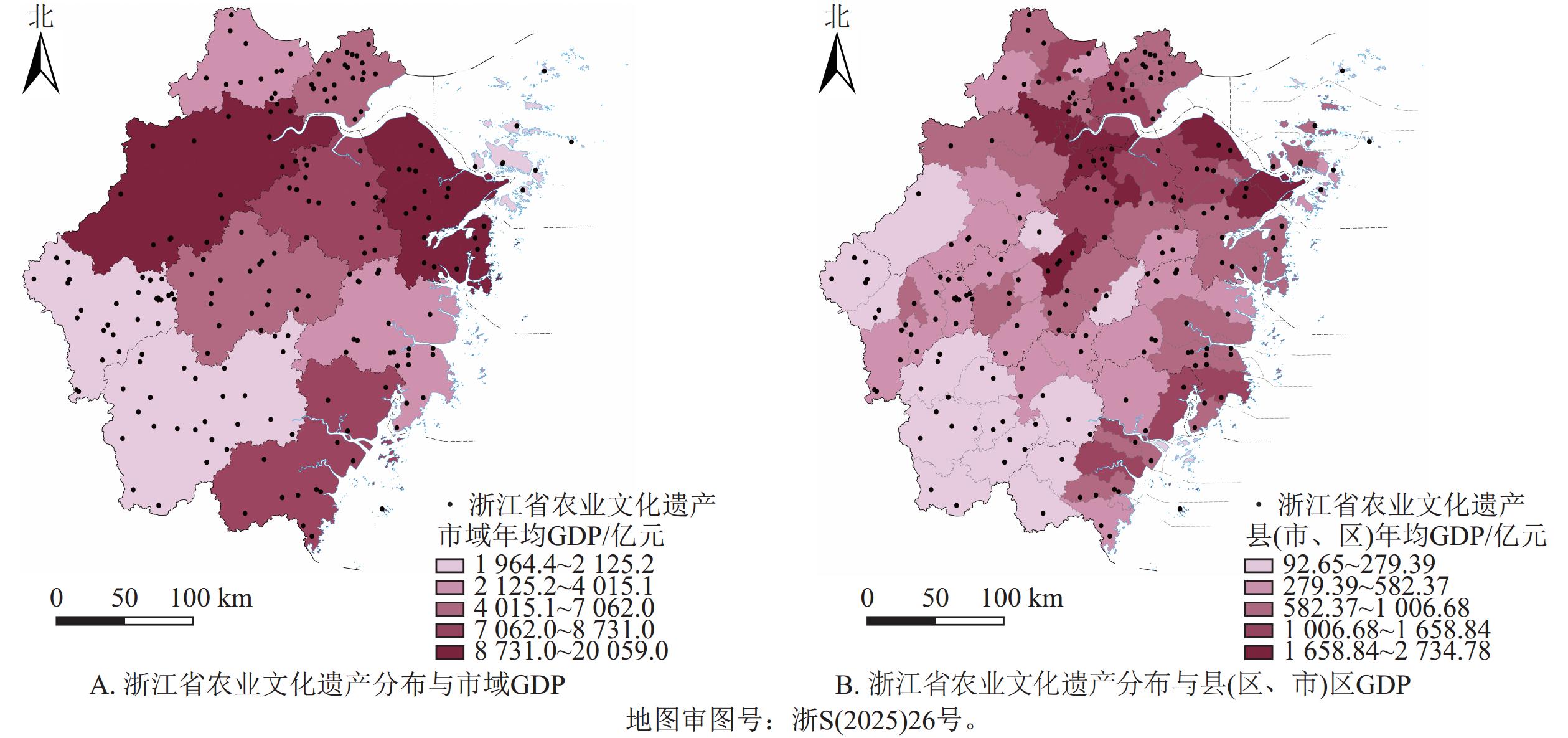 Objective As a province in China to initiate the identification and protection of agricultural heritage, Zhejiang Province leads the country in the number of important agricultural heritage sites both in China and worldwide. The aim of this study is to investigate the spatial distribution pattern and influencing factors of agricultural heritage in Zhejiang, which provides valuable insights for the conservation and sustainable utilization of agricultural heritage across China. Method Based on 205 agricultural heritage sites recognized by Department of Agriculture and Rural Affairs of Zhejiang Province in 2024, the spatial pattern, morphology, and concentration degree were analyzed by using ArcGIS 10.2. Combined with the topography of Zhejiang Province, agricultural heritage sites were classified spatially, and influencing factors were examined. Result The spatial distribution of agricultural heritage in Zhejiang was characterized by an overall dispersed pattern and small-scale multi-point aggregation. The concentration of agricultural heritage was relatively high at the city level, mainly concentrated in Lishui and Quzhou. At the county level, Longyou County exhibited the highest concentration. Zhejiang’s agricultural heritage zones were spatially divided into high mountain agricultural heritage zone in hilly areas of west Zhejiang, plain and basin agricultural heritage zone in Jinqu Basin of central Zhejiang, water town agricultural heritage zone in plains of north Zhejiang, composite agricultural heritage zone in hilly areas of east Zhejiang, and marine and fishery agricultural heritage zone in southeast coastal plains and islands. Conclusion The spatial distribution pattern of agricultural heritage in Zhejiang is mainly influenced by a combination of natural factors, including elevation, climate, and hydrological systems, as well as socio-economic factors such as economic development level, population, urbanization rate, and historical culture. [Ch, 6 fig. 37 ref.]
