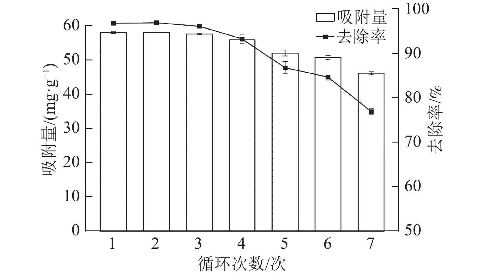 Objective To address the challenges of difficult degradation of azo anionic dyes in environmental wastewater treatment and the poor environmental adaptability of traditional adsorbents, this study aimed to develop a novel composite hydrogel based on agricultural and forestry biomass (lignin) for efficient dye adsorption, thereby providing a new strategy for the preparation of green water treatment materials. Method A novel lignin-based composite hydrogel (HPAAM-VIM-LS) was synthesized via free radical copolymerization. Its microstructure and chemical composition were characterized using scanning electron microscopy (SEM), Fourier transform infrared spectroscopy (FT-IR), X-ray photoelectron spectroscopy (XPS), and X-ray diffraction (XRD). Thermogravimetric analysis (TGA) and tensile/compression tests were performed to evaluate thermal stability and mechanical properties. Adsorption experiments investigated its adsorption performance and reusability for the anionic dye Congo red (CR). The adsorption mechanism was elucidated by analyzing adsorption kinetics and isotherm models in conjunction with structural characterization. Result HPAAM-VIM-LS exhibited a three-dimensional porous network structure. Its surface, rich in hydroxyl, carboxyl, and imidazolium cationic groups, provided abundant active sites. The thermal decomposition temperature exceeded 189.9 ℃. The material demonstrated a tensile strain of 746%, an elastic modulus of 15.15 MPa, and high adsorption efficiency across pH 5.0−8.0 and temperatures of 25−55 ℃. Under optimal conditions (pH 6.0, 35 ℃), a CR removal rate of 96.4% and a maximum adsorption capacity of 490.58 mg·g−1 were achieved. Structural analysis revealed that the adsorption mechanism was synergistically driven by electrostatic attraction, hydrogen bonding, π—π stacking, pore filling, and coordination. The adsorption process followed the pseudo-second-order kinetic model and was jointly controlled by external/intraparticle diffusion and chemisorption. HPAAM-VIM-LS maintained a CR removal rate more than 85% after 7 adsorption-desorption cycles. Conclusion This study successfully prepared an environmentally friendly lignin-based composite hydrogel, HPAAM-VIM-LS, combining high adsorption capacity, broad environmental adaptability, and excellent mechanical properties. It provides an efficient and sustainable solution for the resource utilization of lignin and the treatment of dye-containing wastewater. [Ch, 11 fig. 3 tab. 29 ref.]