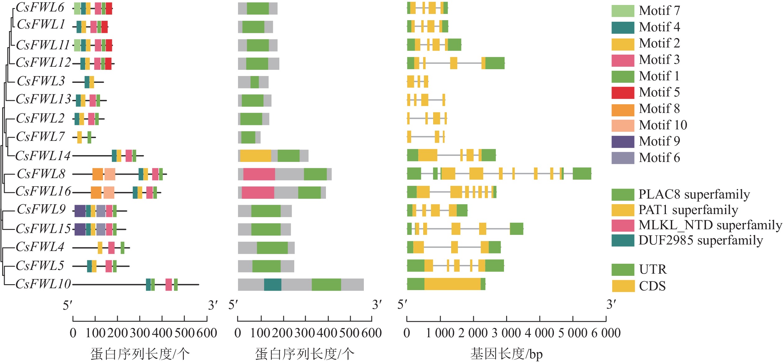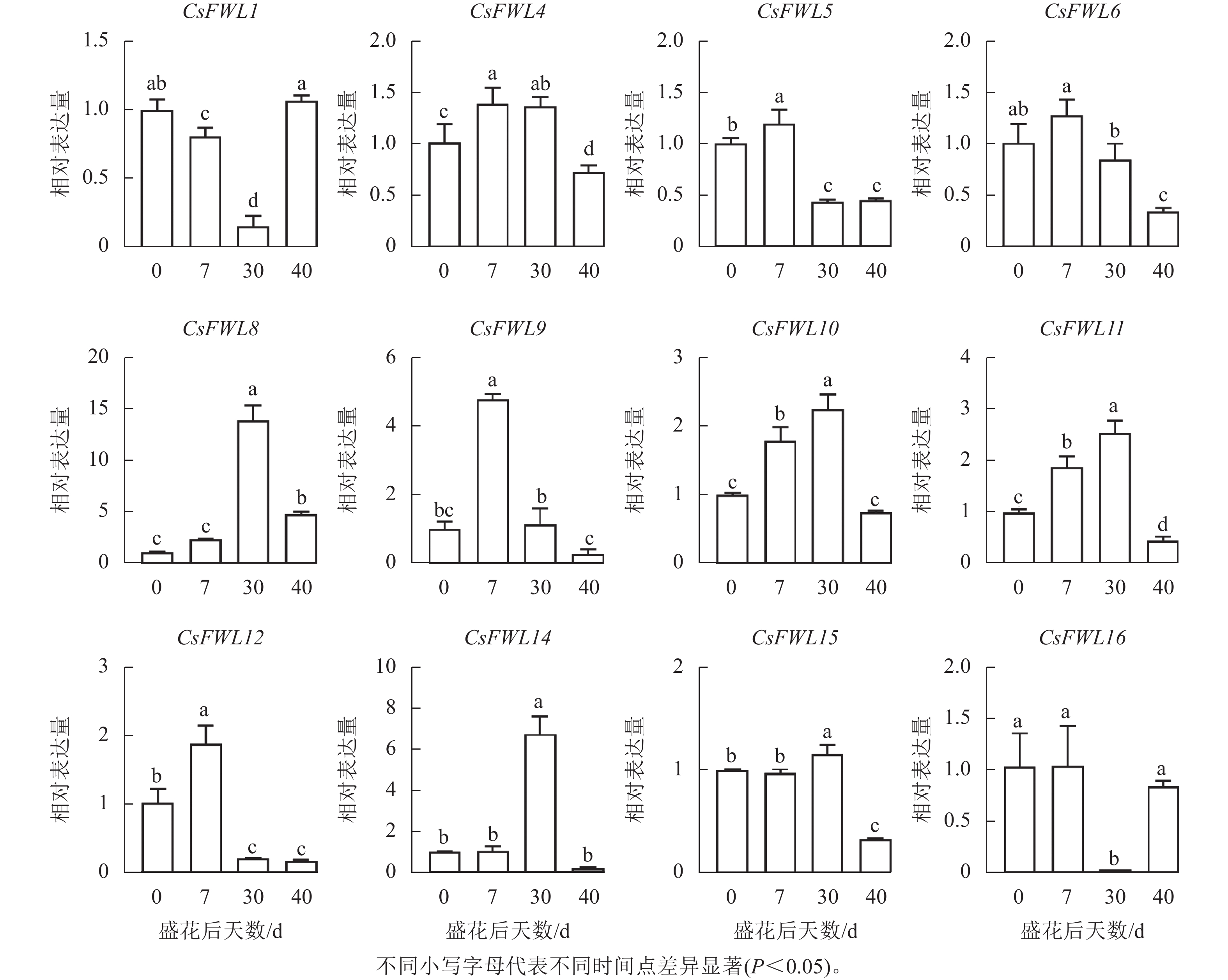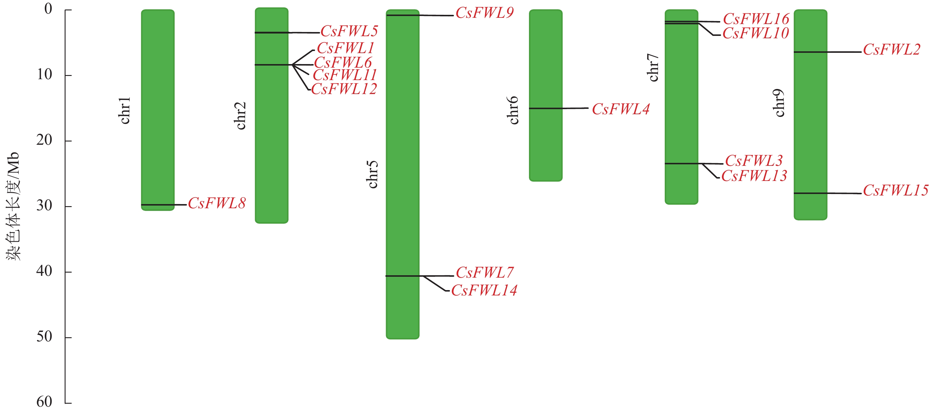 Objective This study aims to identify the members of the FW2.2 family in Citrus sinensis and analyze their structural characteristics and expression patterns during the fruit cell division period, so as to provide a theoretical basis for exploring the function of the FW2.2 gene family in C. sinensis fruit development. Method Based on the whole genome data of C. sinensis, FW2.2 family members were screened and identified. Bioinformatics methods were employed to predict and analyze their gene structure, sequence characteristics, chromosome localization, and cis-acting elements. A phylogenetic tree was constructed with FW2.2 sequences from multiple species. The expression patterns of FW2.2 family members during the fruit cell division period were analyzed by real-time fluorescence quantitative polymerase chain reaction (RT-qPCR) technology. Result A total of 16 FW2.2 genes were identified in C. sinensis, distributed on 6 chromosomes, with a length of 100 to 563 amino acids, containing multiple conserved motifs, and mainly located in the cell membrane. Evolutionary analysis revealed that FW2.2 family members from C. sinensis, Solanum lycopersicum, Pyrus bretschneideri, Prunus persica, Zea mays and Oryza sativa were divided into 6 subgroups. Cis-acting elements analysis showed that the promoters of FW2.2 family genes contained elements related to the hormone, growth and development, and abiotic stress. Gene expression analysis showed that there were differences in the expression trends of FW2.2 family genes during the fruit cell division period. The expression levels of CsFWL5, CsFWL6 and CsFWL12 decreased significantly during the fruit cell division period, and were negatively correlated with the increase in cell layers (P<0.01). Conclusion CsFWLs members exhibit a certain degree of conservation during evolution, and share sequence similarities with FWLs genes in crops such as Pyrus bretschneideri, Prunus persica, and S. lycopersicum. CsFWLs show different gene functions. CsFWL5, CsFWL6 and CsFWL12 may be involved in regulating fruit cell division. [Ch, 6 fig. 3 tab. 33 ref.]