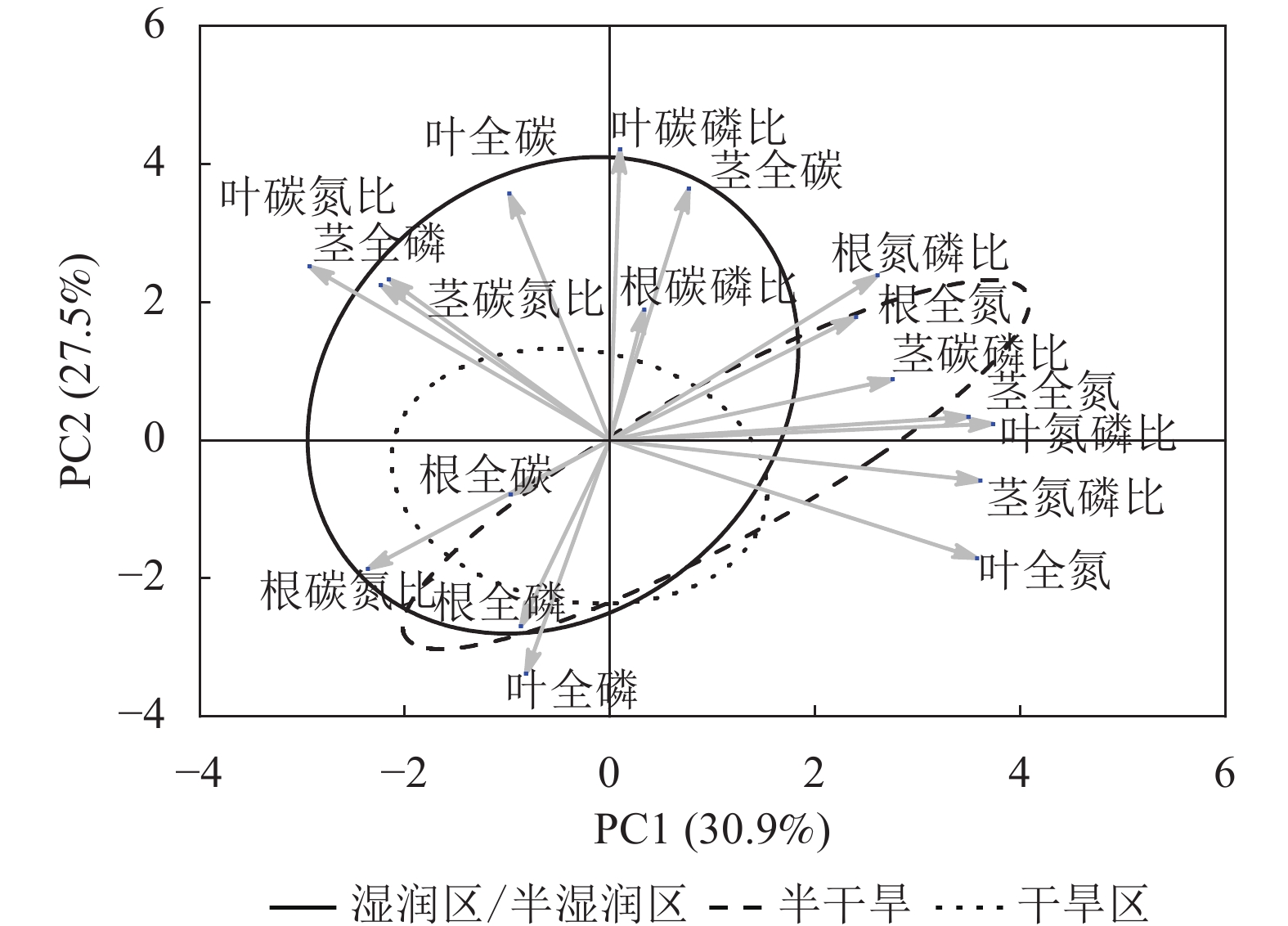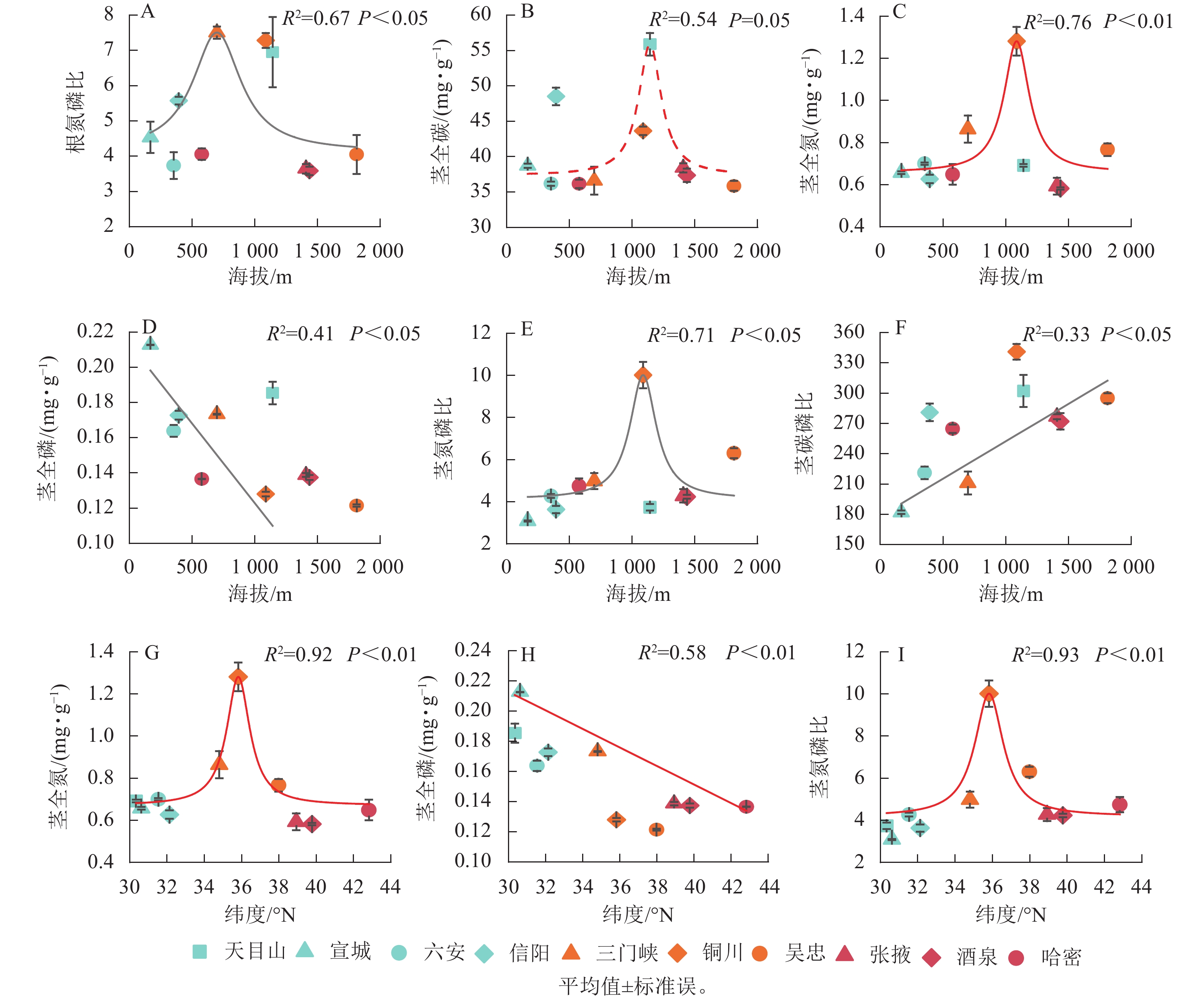 Objective The objective is to analyze the nutrient stoichiometric patterns among organs of the widespread species Setaria viridis and the driving factors, so as to reveal its resource acquisition strategies and growth adaptability on a large regional scale. Method 10 sampling sites were selected along a precipitation gradient from the humid southeast region to the arid northwest region of China, with the widespread species S. viridis as the target plant. The carbon (C), nitrogen (N), and phosphorus (P) stoichiometric indices in its roots, stems and leaves were measured. Using one-way ANOVA and principal component analysis, the variation patterns of stoichiometry along the precipitation gradient were investigated. Structural equation modeling (SEM) and hierarchical partitioning were further employed to identify the key environmental factors driving stoichiometric variation. Result (1) The coefficient of variation of total carbon mass fraction in all organs of S. viridis was the lowest (9.13% for roots and 11.70% for leaves), while the variations of total nitrogen and total phosphorus were relatively large, reflecting the sensitive response of limiting elements to environmental changes. (2) Geographical factors such as latitude and elevation had no significant direct effect on the stoichiometric traits. Their influence was achieved indirectly by regulating climatic and soil conditions. (3) The differences in environmental driving factors among organs lied in that the variation in root stoichiometry was primarily explained by soil factors while stem stoichiometry was predominantly driven by climatic factors. Consequently, leaf stoichiometric characteristics were positively and significantly correlated with mean annual precipitation, photosynthetically active radiation, and soil total phosphorus. Conclusion The stoichiometric traits of S. viridis organs exhibit significant differences across different sampling sites, primarily driven by environmental factors (climate and soil). The chemical diversity of plants is determined jointly by the basic resource utilization strategies (the first principal component) selected by large-scale climatic conditions and the specific adaptive characteristics (the second principal component) refined by local soil heterogeneity (especially phosphorus), through hierarchical regulation. These findings highlight the importance of understanding plant adaptive differentiation at the organ scale, providing a novel perspective for more accurate prediction of plant response and adaptation trajectories under future climate change. [Ch, 7 fig. 2 tab. 26 ref.]