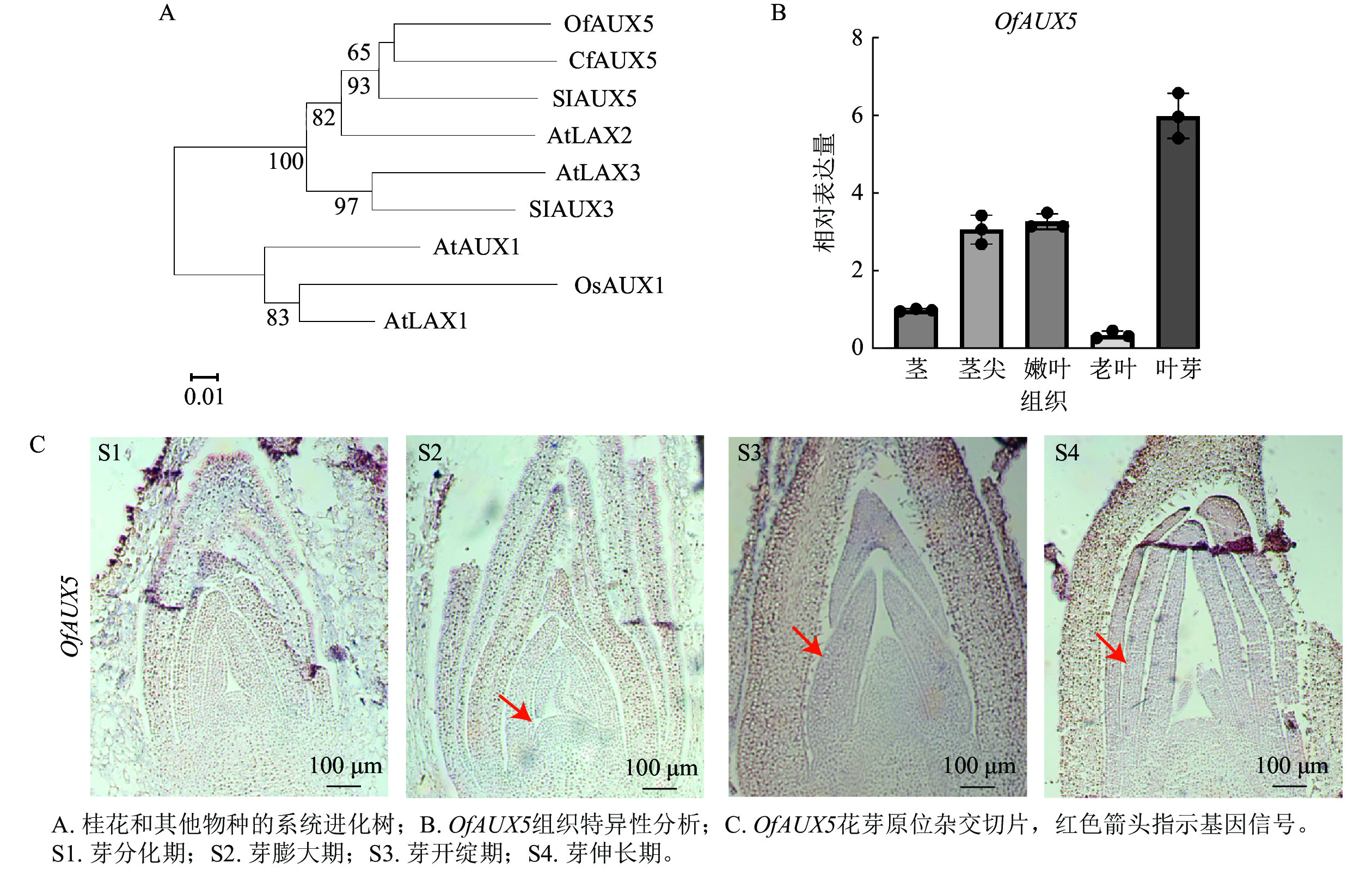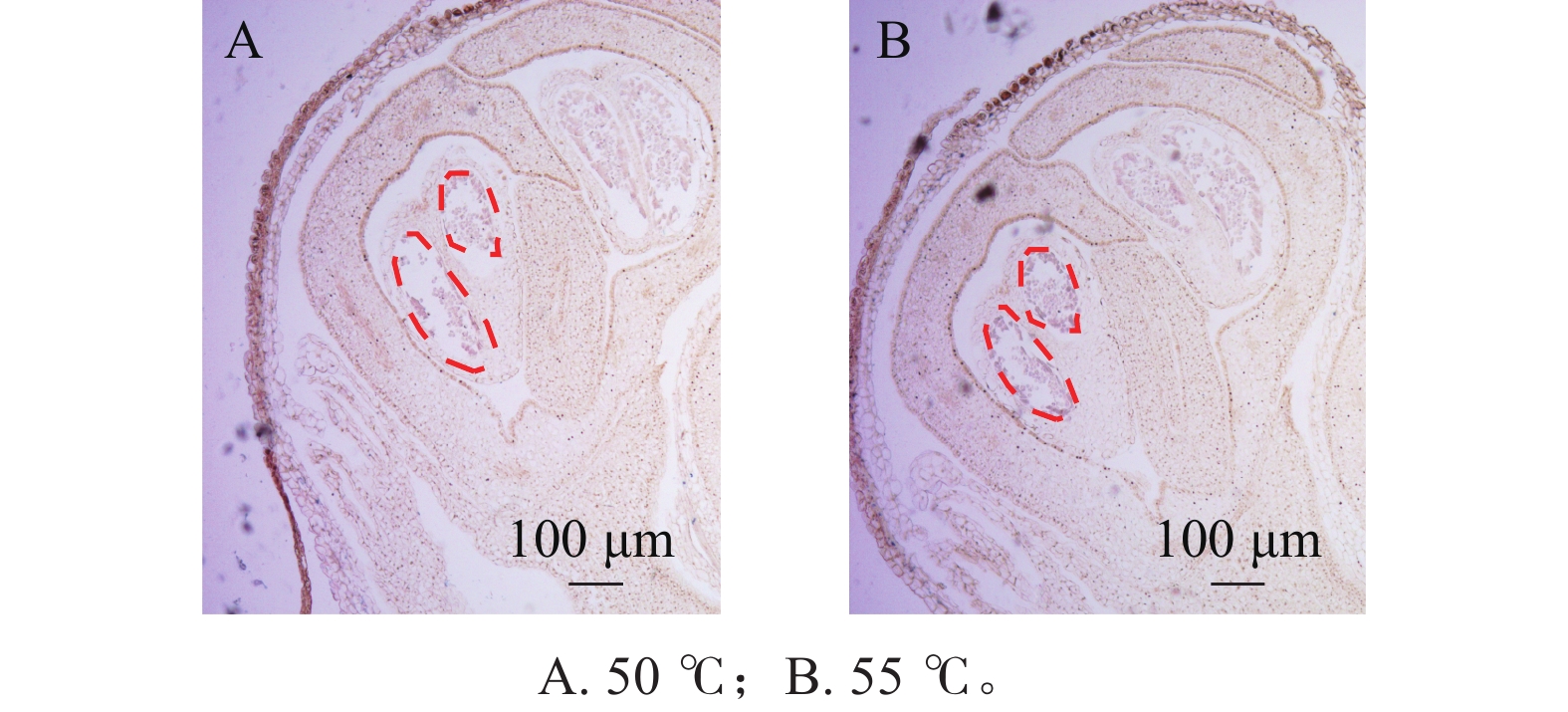 Objective In situ hybridization(ISH)technology is widely used for studying the spatiotemporal expression patterns and functions in different tissues. This study utilizes materials from different cultivars, tissues, and developmental stages of Osmanthus fragrans to establish an efficient and stable in situ hybridization system for this flower species, providing a technical method for the spatiotemporal expression localization of functional genes in O. fragrans. Method Using the auxin response factor OfIAA14 as the detection gene, based on the conventional ISH process, key parameters such as sample vacuumization time, protease K digestion time, whether to perform pre-hybridization, and hybridization temperature and time were systematically optimized and compared. Meanwhile, the functional verification of related genes was conducted across different varieties, tissues, and developmental stages. Result The results showed that the optimal hybridization signal could be obtained under the conditions of vacuumization for 30 min at 0.08 MPa (2 times), proteinase K digestion for 20−25 min, no pre-hybridization, hybridization temperature at 50 ℃, and hybridization time of 20 h. Furthermore, genes such as OfPIF4, OfPIF5, OfUFO , OfYAB2 and OfAUX5 were selected to verifty the applicability of the optimized system in different O. fragrans cultivars, tissues and developmental stages. Good tissue structure preservation and clear and stable signal expression were obtained, indicating that the method has good reliability and certain universality. Conclusion This study established an optimized ISH technology system suitable for O. fragrans tissues, providing reliable technical support for in-depth analysis of the spatiotemporal expression characteristics and molecular regulation mechanisms of genes related to flower development in O. fragrans. [Ch, 9 fig. 1 tab. 25 ref.]